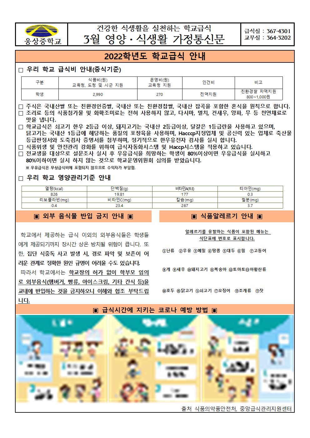 2022년 3월 학교급식 영양표시 및 원산지 안내