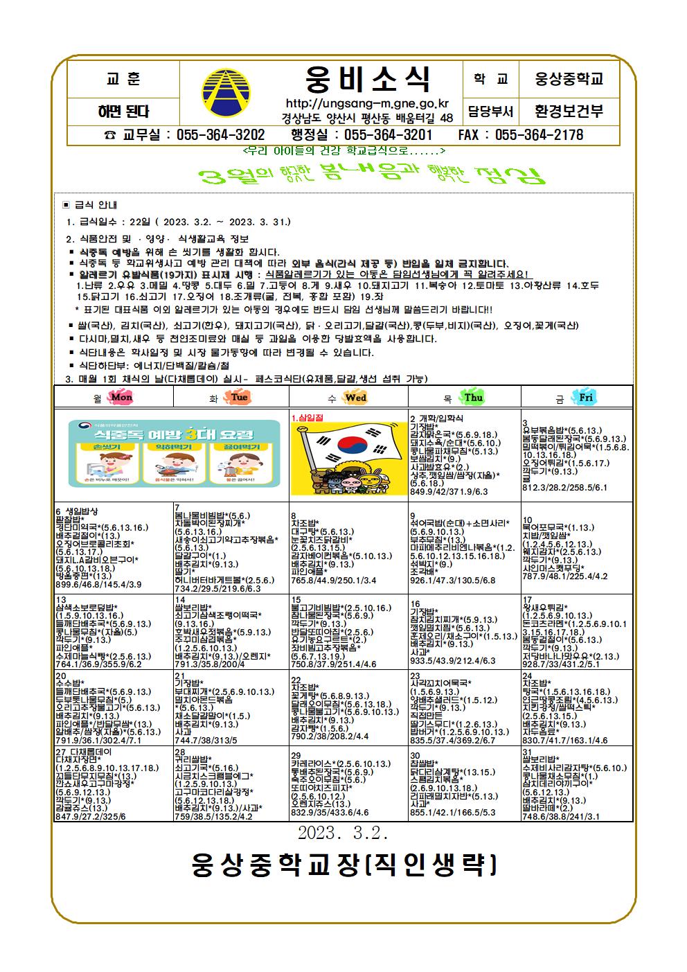 3월 급식안내문