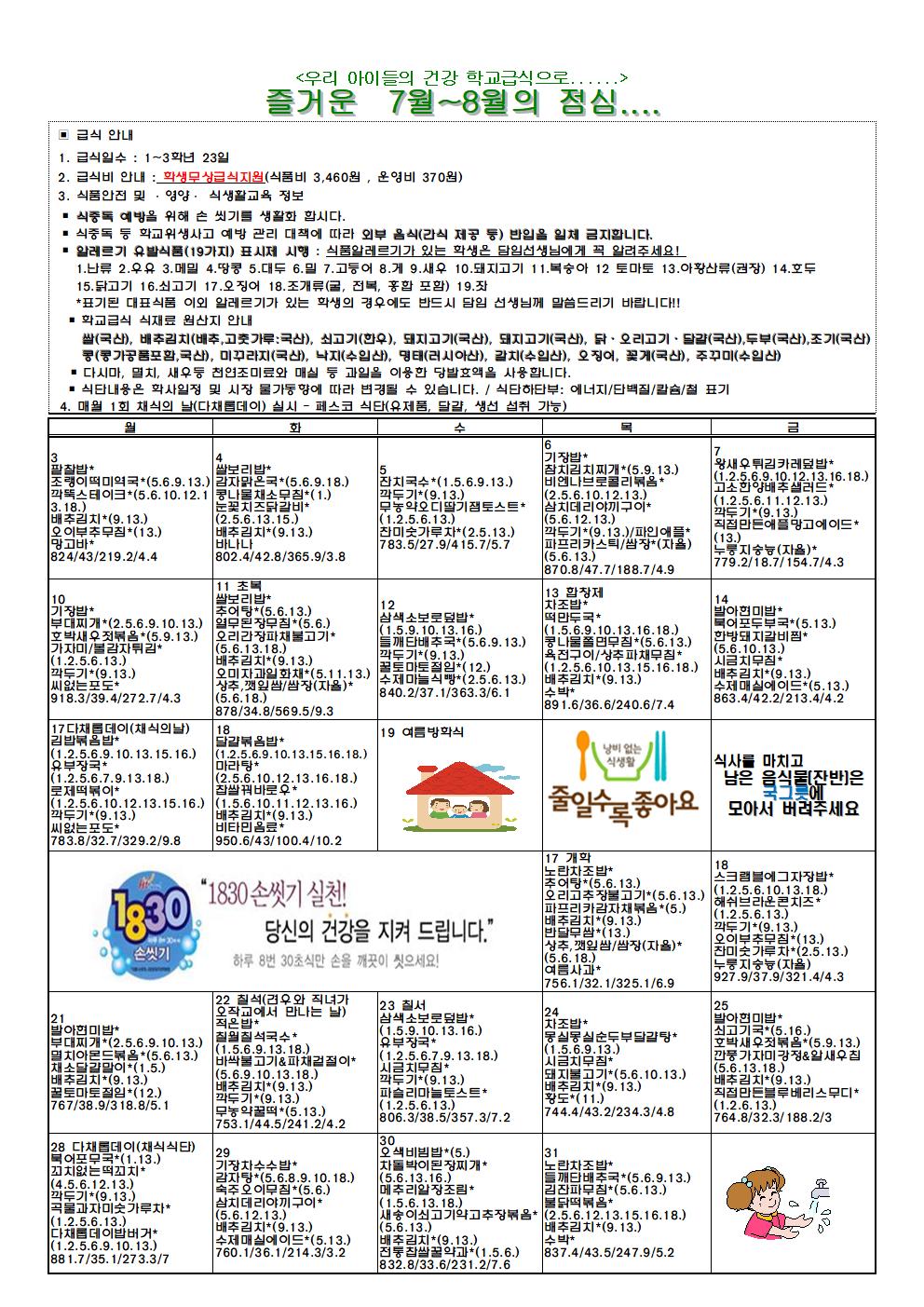 7월 ~8월 식품안전 및 영양,식생활 자료