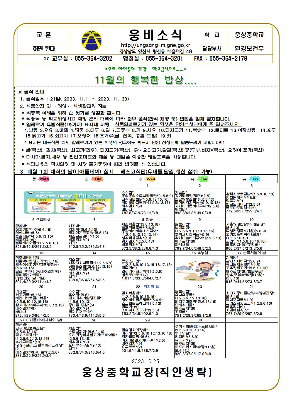 2023학년도 학교급식 조리기구 미생물 검사결과-불검출
